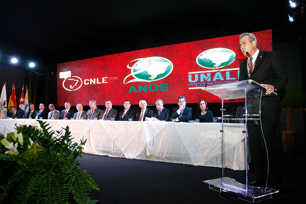 El Presidente de COPA, Sen. Miguel Ángel Chico Herrera, pronuncia un discurso en la sesión de abertura de la Conferencia de la UNALE.